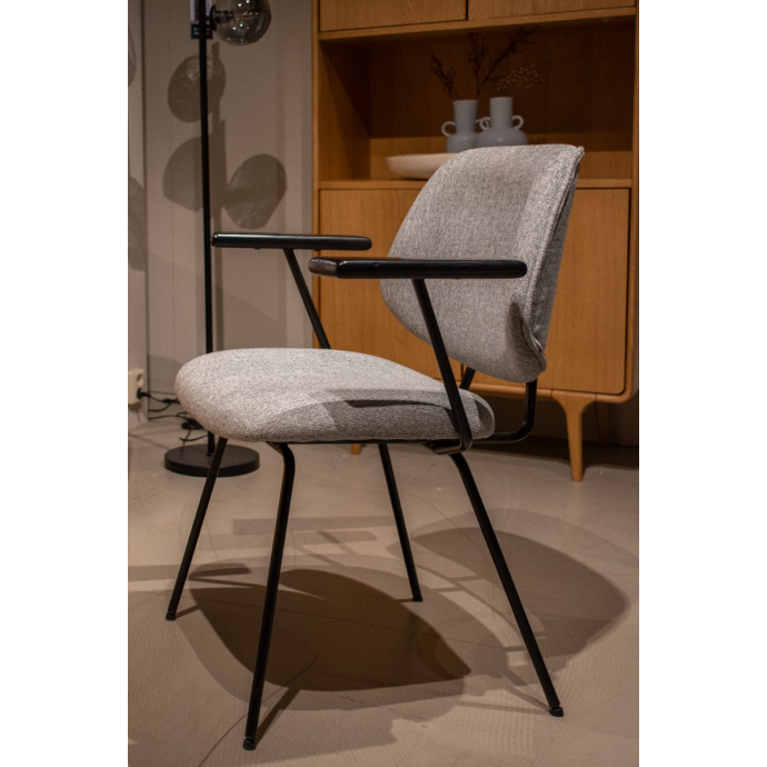 Eetkamerstoel Lynn van Eleonora is zowel stevig als elegant. Met zijn zwarte armleuningen biedt deze stoel extra zitcomfort.