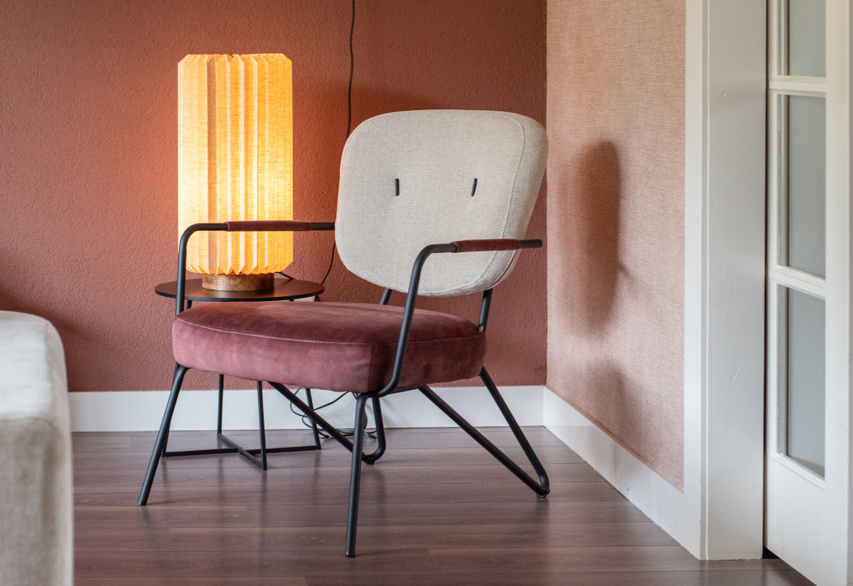 De fauteuil met zijn ronde vorm en zachte bekleding zorgt voor extra zitruimte én voegt een speels en modern accent toe aan het geheel. In combinatie met de ruime hoekbank ontstaat er een gezellige zithoek waar het hele gezin terechtkan.