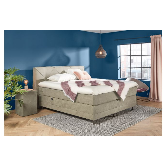 De boxspringset Bodo is een stijlvolle keuze die iets unieks toevoegt aan ieders slaapkamer. Met de mooie diagonale lijnen uit de knopen in het hoofdbord is het zeker een mooie aanwinst. Ook is er ruime keuze aan mogelijkheden qua comfort, stoffen, kleuren en pootsoorten waardoor Bodo goed thuis past in elk interieur.