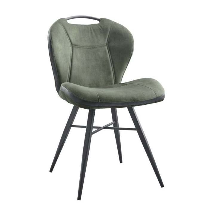 Eetstoel Casado is trendy door de toegepaste stof goldy in 2 mooie kleuren en een beetje industrieel door het stoere stiksel en de band in softyl antraciet die de mooie belijning van deze stoel accentueert.