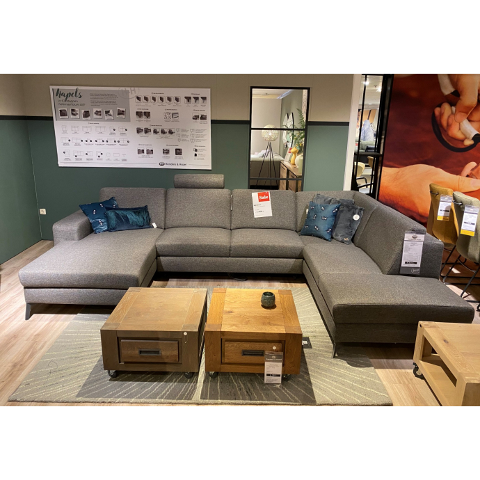 - Opstelling: longchair links + 2,5 zits (zonder armen) + ottomaan rechts;