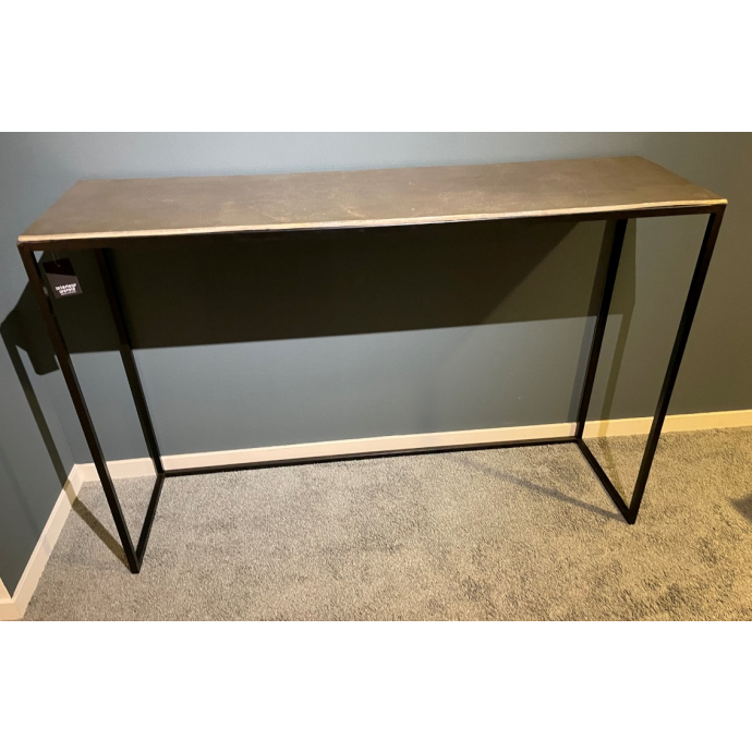 Showroomsale Sidetable Plovdiv, zwart metalen frame met goudkleurig steen topblad.