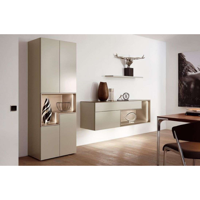 Wandmeubel Tetrim is een onderdeel van het kastenprogramma Tetrim van Hülsta. Tetrim kenmerkt zich door de karakteristieke L-vorm. De kubistische elementen zijn naar eigen inzicht samen te stellen tot een opbergsysteem dat naadloos aansluit op je persoonlijke interieur- en opbergwensen. De wandkast valt op door zijn grote onderdelen, open en gesloten delen en slanke randen. Het uitgebreide kastenprogramma is door de keuze uit talloze afwerkingen, opties, afmetingen en modules volledig naar eigen wens samen te stellen. Tetrim is verkrijgbaar van ladekast tot wandmeubel.